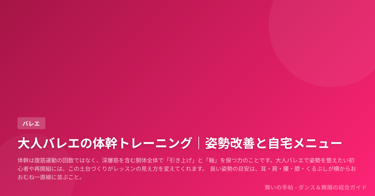 大人バレエに体幹トレーニングが必要なのは、見栄えのために腹筋を鍛えるからではなく、踊るための胴体の土台を先に整えると、練習そのものの安定感が変わるからです。