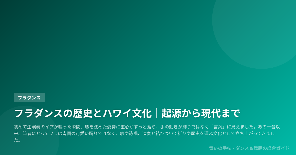 本記事では文化的な文脈を説明する場面では「フラ」を主に用い、日本での一般呼称として「フラダンス」も尊重する、という立場で統一します。