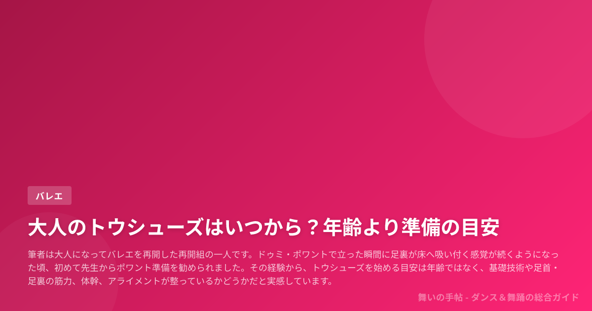 そこに目を向けると、ポワント開始は「まだ早い」「もう遅い」の話ではなく、「準備がそろったかどうか」の話だと捉えられます。
